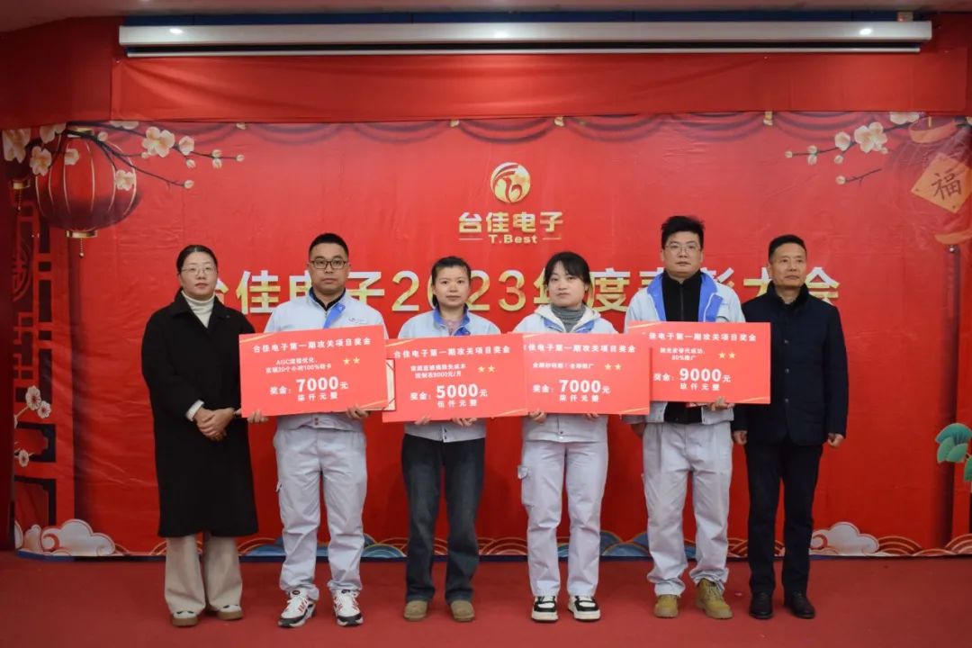 为了表彰先进,激励更多的人向优秀员工学习,传递标杆力量,激发员工工作热情。子公司台佳电子于近期举行了2023年度表彰大会。子公司领导、各级干部、优秀团队、员工、项目代表、十佳改善提案代表等近70人参加了本次会议。