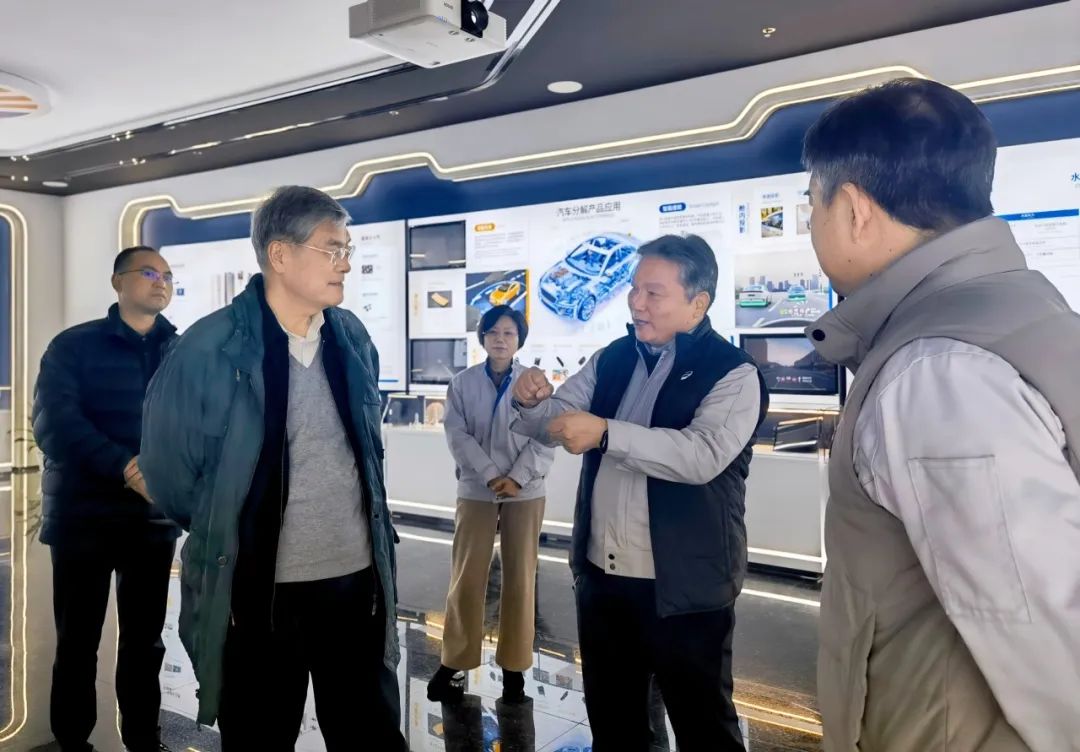 在战略展厅,董事兼总经理王震宇详细地为潘云鹤院士一行介绍了DG视讯光电从创立之初至今的发展历程,特别是在消费电子领域的深耕细作、车载光电技术的突破性进展,以及积极拥抱AR/VR时代的光学战略布局。潘院士对每一环节的讲解都表现出浓厚兴趣,不时点头赞许,并与公司高管就技术前沿、市场趋势等话题展开了深入而富有前瞻性的交流。潘院士还特别关注了公司的技术研发体系,对DG视讯光电在光学领域持续创新、不断突破所取得的成果给予了高度评价。