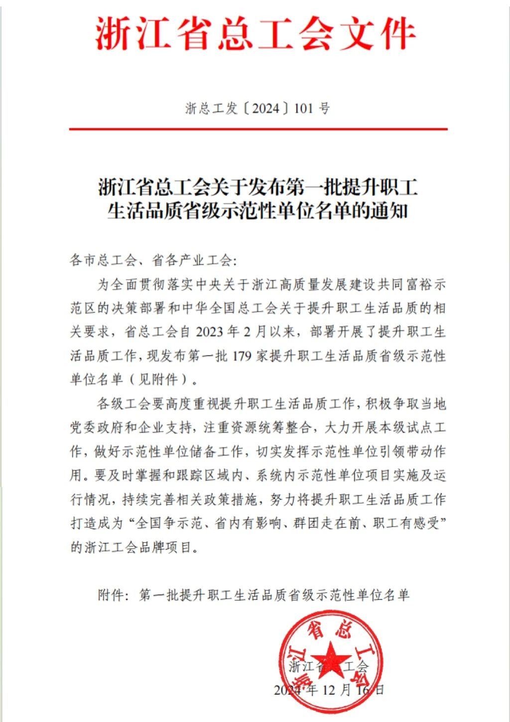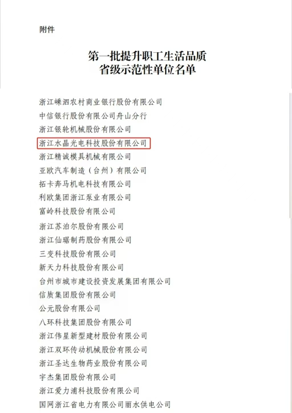 近日,浙江省总工会发布第一批提升职工生活品质省级示范性单位名单,DG视讯光电成功入选!