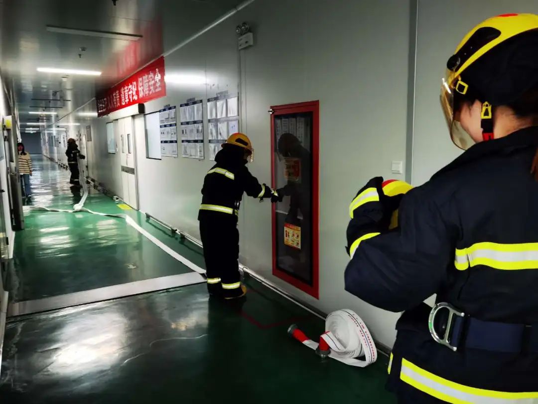 随着“预备,开始”的口令下达,在各事业部安全负责人的组织下,义务消防员们有条不紊的开展应急演练。大家面对火情沉着冷静,团结协作紧密配合共同完成任务。
